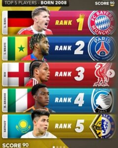 Басылым үздік жас футболшылардың тізімін жасап, оларды жас ерекшеліктеріне қарай бөлді. Рейтингте 2005-2008 жылдары дүниеге келген үздік футболшылар кірді. 2008 жылғы, яғни 17 жастағы футболшылар арасында ТОП-5 тізімі: